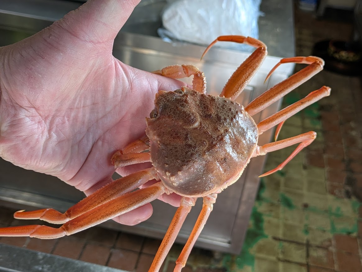 ズワイガニが解禁となりました!!今日は小さいセイコガニが入荷しました!!北海道産の特大ぶりです!!白子も入荷し始めました!!鮮度抜群のシマエビもたっぷり入りました!!しいたけも甘…
