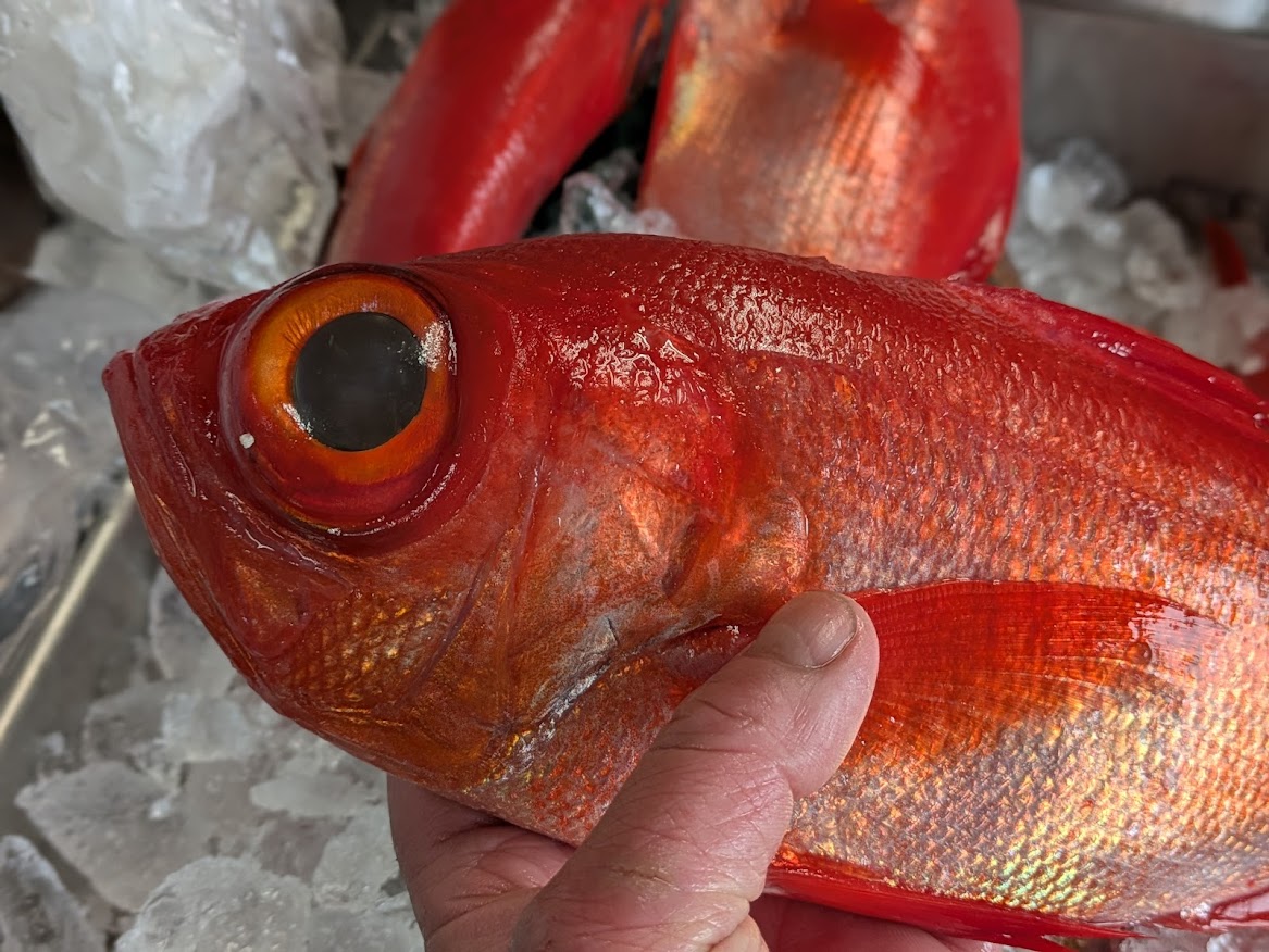 北海道産の八角が久しぶりに入荷しました!!脂ののった白身です!!お刺身でぜひどうぞ!!旭がに・セイコガニ・白子などなど今日もいろいろ揃っています!!