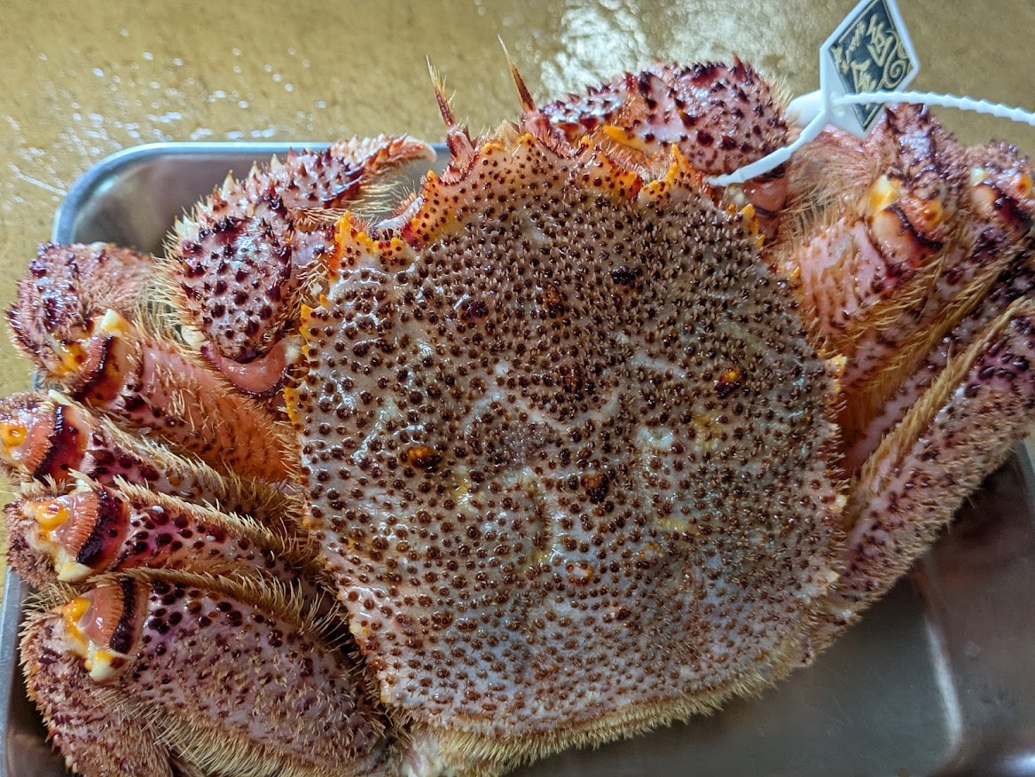 北海道産の八角が入荷です!!脂ののった白身です!!毛ガニも大きいのが入りました!!千葉より届いた丸がには汁物で美味しいです!!