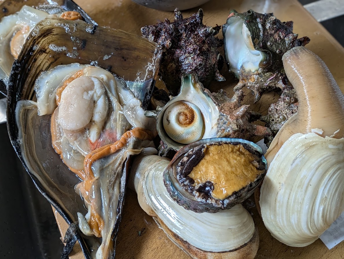 鮮度抜群の甘えび!!脂ののった白身のはっかく!!栄螺・平貝は良いサイズです!!さっぱりポン酢で美味しいめいたがれい!!毛ガニも大きいのが入荷しています!!